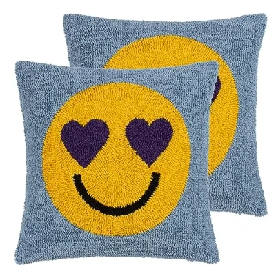 Featuring all-over woven loop cotton designs, with the depiction of an emoji-style face. Complete with plain Cotton reverses, Oxford edge trims, and hidden zip fastenings. Made with super soft 70% Polyester 30% Cotton fabric. Dry Clean Only and Do Not Iron. Fashion pieces which help to create your own interior style for your living space.