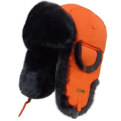 HEYANN Ushanka Trapper Hat Orange,Winter Ear Flap Trooper Russian Faux Fur Winter for Men Women with Flaps Soviet Pilot Hat(S/M, Orange)