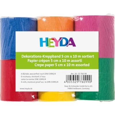 Heyda 203376099 Crepe Paper 5 cm x 10 m Assorted Colours 32 g/m2 Pack of 6 Rolls