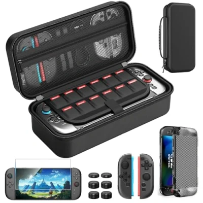 [Designed for Switch 2] Designed exclusively for the nintendo switch 2 carrying case has plenty of storage space for all your gaming essentials. The large capacity can hold up to 12 game cards, the official charger and a variety of accessories. Dedicated zipped mesh pockets keep your belongings safe and organised, while soft compartments provide extra protection. The perfect companion for your nintendo switch 2 console. [Easy to install and use cover] The nintendo switch 2 cover is made from a durable PC material that protects your console from bumps and scratches. The cover features a unique design with a detachable grip cover that provides you with flexibility and convenience. This cover not only protects your nintendo switch 2, but also enhances your gaming experience by providing a comfortable and secure grip. [HD Scratch Resistant Tempered Film] Included in our switch 2 accessory kit is a HD anti-scratch tempered film screen protector. This screen protector is designed to provide crystal clear visuals while offering strong protection against scratches and smudges. The tempered film is easy to apply and ensures that your nintendo switch 2 screen stays pristine so you can enjoy your games to the fullest. [Reasonable storage space] The nintendo switch 2 travel case features soft bulkhead dividers to effectively separate and protect your console. These dividers prevent your accessories from getting damaged during use. Well-organised storage ensures that all your gaming essentials, including game cards, chargers and other accessories, are neatly arranged and easily accessible. This thoughtful design makes it the perfect choice for gamers on the go. [Enhance your gaming experience] Our switch 2 accessory pack includes six thumb grips designed to protect the console's joysticks. These thumb protectors not only enhance the durability of the joysticks, but also provide more comfortable and precise control, which improves the overall gaming experience. They are easy to install and remove, allowing you to customise your nintendo switch 2 to your liking.