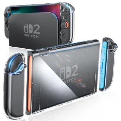 [PC Transparent Material] Crafted from premium PC material, this nintendo switch 2 cover ensures a clear view of your console while offering robust protection. The transparent design allows the original aesthetics of your device to shine through. [Durable & Detachable Grip] Featuring a detachable grip design, this nintendo switch 2 protective case provides enhanced comfort during extended gaming sessions. The sturdy build ensures long-lasting durability, while the easy-removable grips offer flexibility. [High-Precision Cutouts] With precisely engineered cutouts, this nintendo switch 2 case allows for seamless access to all ports and buttons. The accurate alignment ensures compatibility with the console's expansion dock, maintaining full functionality. [Ergonomic Design] Engineered with human ergonomics in mind, this nintendo switch 2 cover ensures a comfortable and secure fit in your hands. The sleek and streamlined design reduces strain during extended gaming sessions, allowing you to focus on your gameplay without distractions. [Tempered Film & Thumb Caps] The package includes a high-definition tempered glass screen protector for superior clarity and scratch resistance, along with 6 thumb caps designed to enhance your gaming experience by providing a secure and comfortable grip on the analog sticks.
