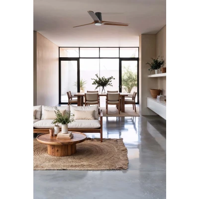 Heywood L LED ceiling fan with CCT function: stylish lighting and ventilation for modern living spaces The Heywood L LED ceiling fan combines modern design with functional versatility. Made from pine wood, aluminium and PP, it blends seamlessly into various interior styles, such as modern and country house. The integrated LED light source offers an impressive colour temperature range from warm white to cool white to daylight, which can be individually adjusted using the controllable light colour (CCT). The light source is also dimmable. - Fan power (W) 4-5-8-13-23-32 - RPM 58-75-94-124-152-173 - Airflow (m³/min) 56-72-97-120-151-174 - Airflow (CFM) 1983-2557-3447-4269-5397-6234 - incl. remote control