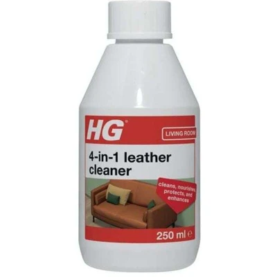General description HG 4-in-1 Leather Cleaner is a water-based product designed for the care and maintenance of full-aniline and scumbled leather, commonly used in furniture, suitcases, and bags. It cleans, nourishes, and protects leather surfaces, restoring their appearance and durability. Technical specifications Water-based formula Enriches color and structure of leather Protects against dirt, stains, and perspiration Prevents drying out of expensive leather Compatibility and accessories Suitable for full-aniline and scumbled leather types Use with a cloth or sponge for application Installation Clean the leather surface thoroughly with HG deep cleaner for leather if it is dirty or treated with other agents Allow the cleaned surface to dry for approximately 30 minutes Usage Apply HG 4-in-1 Leather Cleaner onto a cloth or sponge Gently rub into the leather surface After about 10 minutes, buff off with a soft cloth without applying pressure Repeat as needed for optimal protection and