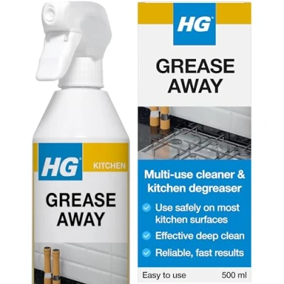 HG Grease Away degreasing spray: A safe & effective kitchen degreaser for animal & vegetable fats plus food oils Heavy duty grease remover: Cleans stainless steel, galvanised steel, ceramic tiles, enamel & aluminium surfaces simply & safely Professional grade cleaning for your home: Safe to use on all kitchen surfaces & perfect as a kitchen degreaser for the hob, tiles, microwave & cooker hoods Easy to use: Spray on, wait a few seconds, then wipe the grease away. Refillable bottle is more eco friendly – a little goes a long way! 500ml spray bottle of HG Grease Away: With help from this fast & hard working kitchen degreaser the war on grease is easily won!