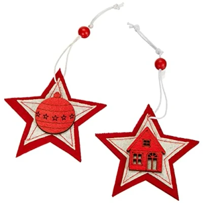 The replacement assortment of felt tree pendants in red/white in 5 different designs, consists of 10 pieces per bag The diameter of 8 cm sets the motifs in the scene and thus gives them the Christmas character High quality