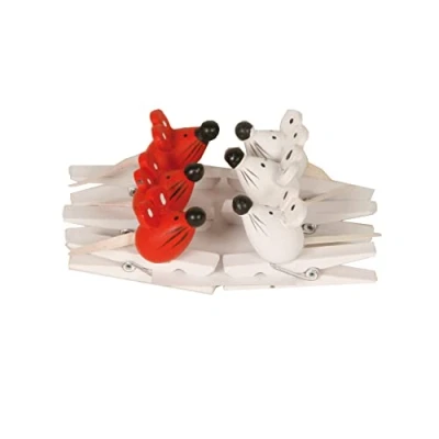 The clips are characterised by their modern design. The set contains 6 clips with mouse, each of which 3 white and 3 red mice. The pegs are made of high quality wood.
