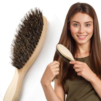 HHUUMM Hair Brush, Wild Boar Detangling Natural Bristles, Brush Without Pulling (Oval)