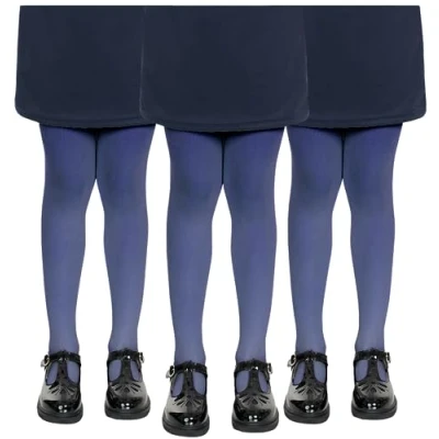 hi!mom 3PACK School Tights Girls For Kids Strong Footed Soft Ballet Uniform Dancing Sport Navy 7/8Y