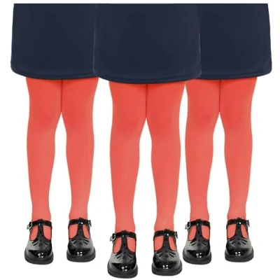 hi!mom 3PACK School Tights Girls For Kids Strong Footed Soft Ballet Uniform Dancing Sport Red 5/6Y
