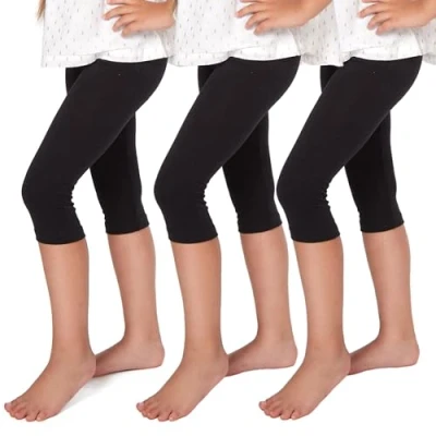 EXCEPTIONAL COMFORT FOR KIDS: Crafted from premium quality, ultra-soft stretch cotton fabric, these girls' leggings ensure unparalleled comfort and freedom of movement during everyday activities, making them perfect for school, dance classes, or playtime. VERSATILE USAGE: Ideal for wearing to school, dance classes, or during play, these 3/4 length leggings are a must-have in every girl's wardrobe, providing not just a stylish look but also comfort and versatility. RICH VARIETY OF COLORS: Each set includes three pairs of leggings in 10 vibrant colors, including black, white, brown, navy, royal blue, beige, red, yellow, green, and turquoise, offering endless options to match any occasion and style. PERFECT FIT FOR GROWING GIRLS: Available in sizes ranging from 2 to 13 years, these leggings are designed to perfectly contour to a child's changing body, ensuring comfort and freedom of movement regardless of age. DURABLE AND EASY TO MAINTAIN: Constructed from high-quality materials, these leggings are durable and easy to care for, retaining their shape and color even after multiple washes, making them a practical and long-lasting choice for parents.
