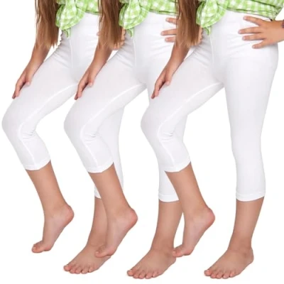EXCEPTIONAL COMFORT FOR KIDS: Crafted from premium quality, ultra-soft stretch cotton fabric, these girls' leggings ensure unparalleled comfort and freedom of movement during everyday activities, making them perfect for school, dance classes, or playtime. VERSATILE USAGE: Ideal for wearing to school, dance classes, or during play, these 3/4 length leggings are a must-have in every girl's wardrobe, providing not just a stylish look but also comfort and versatility. RICH VARIETY OF COLORS: Each set includes three pairs of leggings in 10 vibrant colors, including black, white, brown, navy, royal blue, beige, red, yellow, green, and turquoise, offering endless options to match any occasion and style. PERFECT FIT FOR GROWING GIRLS: Available in sizes ranging from 2 to 13 years, these leggings are designed to perfectly contour to a child's changing body, ensuring comfort and freedom of movement regardless of age. DURABLE AND EASY TO MAINTAIN: Constructed from high-quality materials, these leggings are durable and easy to care for, retaining their shape and color even after multiple washes, making them a practical and long-lasting choice for parents.