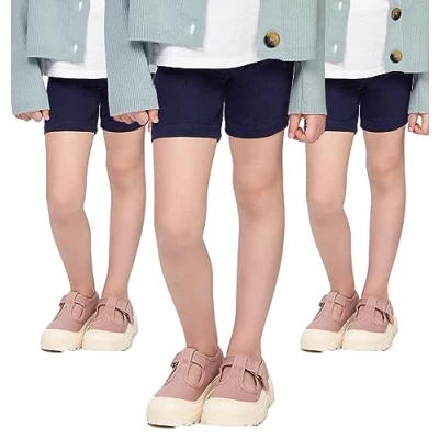 hi!mom School Short Leggings for Girls Cotton Rich 1/2 Length Shorts Uniform I Over Knee Baby Kids Legggings Dancing Elastic Soft Pants, 2 13 Years, 3 Pack