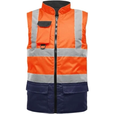 Hi Vis Viz Bodywarmer Fleece Lined Reversible Gilet High Visibility Waterproof Reflective Security Safety Workwear Waistcoat Sleeveless Vest Jacket (UK, Alpha, XXL, Regular, Orange/Navy)