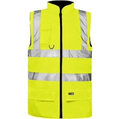 Hi Vis Viz Bodywarmer Fleece Lined Reversible Gilet High Visibility Waterproof Reflective Security Safety Workwear Waistcoat Sleeveless Vest Jacket (UK, Alpha, XXL, Regular, Yellow)
