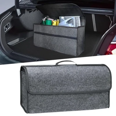 HIAHXC Car Boot Organiser Bag, Foldable Storage, Anti Slip Felt Trunk Tidy Bag for Storage Auto Tools & Interior Declutter Suitable All Vehicles (Grey, Large)