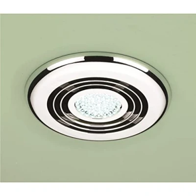 AmazonSlim, flush mounted chrome showerlight fascia with built in cool white LED lamp and high powered inline fan Dimensions: 14.5 x D1.5cm Extraction rate 210m3/hr. Only 32 decibels. Adjustable run on timer (2-30 mins) High power electric motor. External fixed grill. 3m flexible Ø10cm ducting MR 16 3 Watt LED lamp €“ Cool white, 120 lumens. IPX4 €“ electrically safe for use in the bathroom, Weight: 6.283174467 Pounds, Manufacturer: HIB