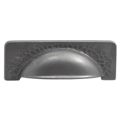 Black Iron Cup pull Craftsman collection 96 mm center to center L: 4-7/16 inch w: 1-9/16 inch p: 1 inch, Weight: 0.01 Pounds, Manufacturer: Hickory Hardware