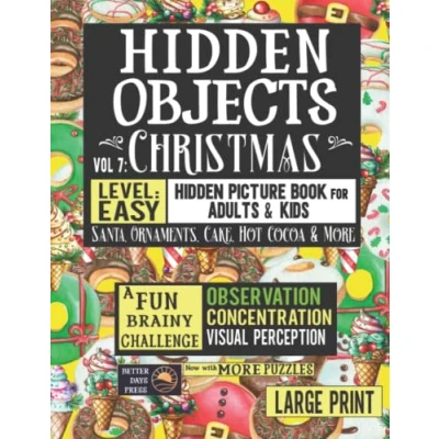 Hidden Objects Easy Picture Book for Adults & Kids: Where's the Missing Object? Large Print Logic Brain Puzzles Fun Spy, Spot, Search or Seek ... Memory Puzzle Games Christmas Season