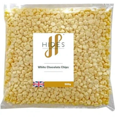 Hides Fine Foods White Chocolate Chips 500g GMO Free Suitable for Vegetarians Baking Desserts Cookies Ganache Muffins Cakesicles Cakes Cupcakes Tempering Mocha