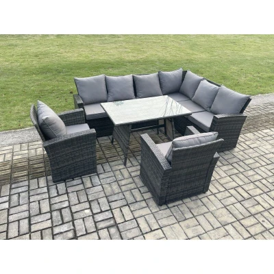 High Back Outdoor Garden Furniture Set Rattan Corner Sofa Dining Table With 2 Armchairs 8 Seater Dark Grey Mixed Fimous