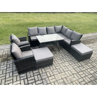 High Back Outdoor Garden Furniture Set Rattan Corner Sofa Dining Table With 2 Armchairs Big Footstool 10 Seater Dark Grey Mixed Fimous