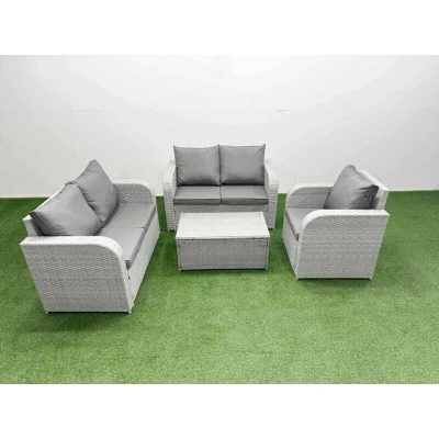 High Back Poly Rattan Garden Furniture Set with Reclining Chair Loveseat Sofa Rectangular Coffee Table Indoor Outdoor Patio Light Grey Fimous