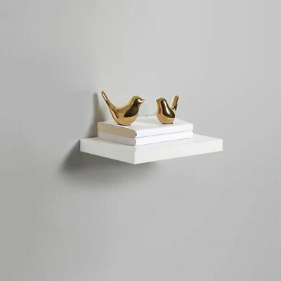 LOOKING FOR A FLOATING SHELF? wall shelves? wall mounted shelves? Then have a look and bring these stunning-looking floating shelf white or wooden shelves for wall to your home. STYLISH, STURDY & MODERN DESIGN: The stylish white floating shelf is perfect for adding a little style to your home. Robust and quality design construction and high gloss coating. USES: Perfect for living rooms, bedrooms, or even hallways. Place all kinds of items on the wooden shelf and bring some decorative storage to your home with this trophy shelf. EASY TO ASSEMBLE CLEAN & STORE: The item comes with all required fixing with no visible brackets. Instructions of assembly will be provided with the product or by email. Maximum Weight: 3kg DIMENSIONS & MATERIAL: Manufactured with a high-quality MDF wood material & PVC finish. Item dimensions: W23.5XD24XH3.8CM, Weight: 0.8KG, Package Dimensions: 30.00x28.00x5.00CM..