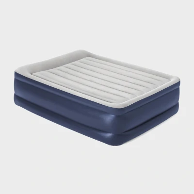 BlacksBuilt-in mains powered pump - quick deflation/inflation Study Tritech I-beam construction - enhanced support Surrounding frame design - prevents roll-off and increases comfort High rise design Raised pillow King size Carry bag included. Built-in pillow Repair patch included Max weight: 300kg Dimensions 2.03m x 1.52m x 56cm / 80" x 60" x 22" Folds away neatly into a handy storage bag Durable PVC with welded seamsj