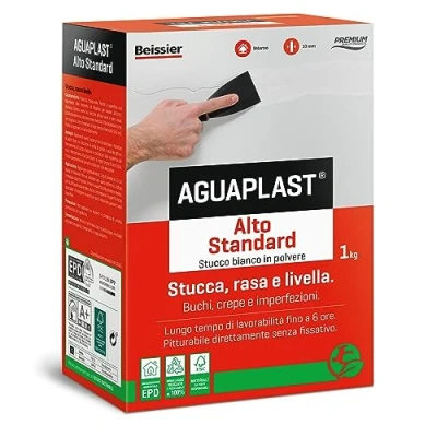 Premium quality indoor putty. Shaves and fills in one hand 👉 Can also be used wet on wet surfaces. ✔️ Breathable Work time after kneading with water for up to 6 hours. Paintable without fixative. ✔️ Ideal for shaving rough or uneven walls. Restoration of walls after removing wallpaper. ✔️ Filling holes and cracks up to 10 mm in one hand. Shave walls with old paint well cohesive 💪❃ Can be applied to multiple interior surfaces: plaster, plaster, plaster, plasterboard, concrete, brick, wood, pre-painted walls. 💪❃ Creates an excellent quality, white finish with great hardness. 💪❃ Low and even absorption, can be painted over without the need for fixative. Dry as fast as a traditional putty, despite 6 hours of open time., Manufacturer: Aguaplast