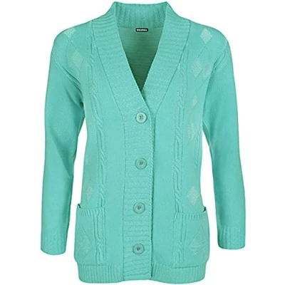 High Street Fashion ® New Womens Ladies Matching Button Long Sleeve Pocket Top Knitted Cardigan Ideal for Casual and Formal wear Size UK 14 16 18 20 22 24 26 28 (14 16, Aqua, Numeric_14)