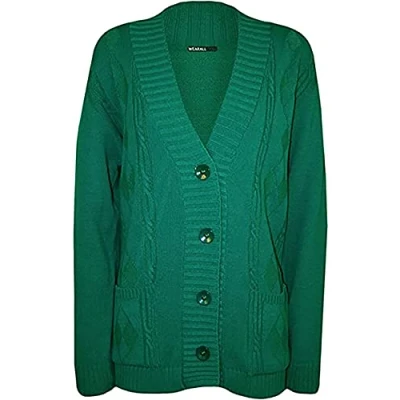 High Street Fashion ® New Womens Ladies Matching Button Long Sleeve Pocket Top Knitted Cardigan Ideal for Casual and Formal wear Size UK 14 16 18 20 22 24 26 28 (26 28, Jade Green, Numeric_26)