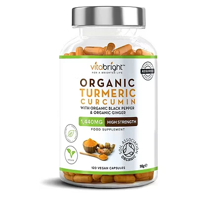 🧡 VITABRIGHT TURMERIC CURCUMIN, GINGER & BLACK PEPPER CAPSULES – 180-capsule bottle. Take 2 capsules daily (1440mg) for a complete 3-month supply. 🧡 NOT YOUR ORDINARY KITCHEN TURMERIC! Did you know that turmeric can absorb toxic heavy metals from the soil? Not ours! We have it independently lab tested and assured 100% pure. What’s more, every ingredient in our turmeric and black pepper tablets is approved as 100% organic by the highly-respected Soil Association of Great Britain. This is why it’s recommended for long-term herbal therapy and safe to take every day - much safer than taking a cooking ingredient that’s not been tested. 🧡 WHOLE HERB TURMERIC FOR MORE BENEFITS - With more than just high dose curcumin, our turmeric herbal supplements also contain beneficial curcuminoids, essential oils, resins, and antioxidants, including turmerones, zingiberene and other oils, and polysaccharides. Compared to concentrated curcumin capsules made from turmeric extract, our whole herb turmeric is also gentler on the stomach. 🧡 TURMERIC WITH THE POWER OF GINGER AND BLACK PEPPER - These are combined turmeric and ginger capsules, even more effective and supportive than turmeric alone. We’ve also powered up our tumeric curcumin supplement with organic black pepper, naturally containing “piperine” which enhances the turmeric. 🧡 MADE IN THE UK TO PHARMACEUTICAL STANDARDS - Manufactured in pharmaceutical-grade UK facilities, our turmeric supplement is sterile and made to the highest safety standards. Unlike many curcumin supplements with hidden binders or fillers, VitaBright turmeric is completely free from additives. Our turmeric tablets are vegan, pure, and safe for long-term use.