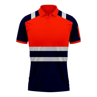High Visibility Hi Vis Safety Work Wear Short Sleeve 2 Tone Contrast Polo Shirts Top Orange Navy