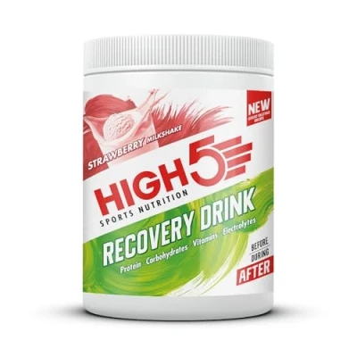 Complete Muscle Recovery Formula: HIGH5 Recovery Drink provides the ideal mix of 20g whey protein and 20g fast-release carbohydrates per serving to repair, rebuild, refuel, and rehydrate muscles after exercise (electrolytes drinks hydration powder) Post Workout Protein Powder, Protein Shake for Muscle Growth & Maintenance: formulated with carbohydrate powder and whey protein concentrate, this post workout recovery shake helps reduce soreness and accelerate muscle recovery after intense workouts Electrolyte Powder, Minerals & Vitamins for Hydration: replaces key electrolytes lost through sweat with 400mg sodium, 90mg potassium, 57mg magnesium, 82mg chloride, and 120mg calcium - Includes Vitamin C, Zinc, and Iron to support the immune system Kind on the Stomach Sports Nutrition Drink Powder: free from artificial sweeteners and smooth-mixing with water or milk, no shaker needed - Perfect carb powder and whey powder protein supplements as running supplements and cycle nutrition Convenient & Tasty Recovery Protein Powder: available in delicious Chocolate, Strawberry, Vanilla and Banana flavours, this easy-mix powder makes post-exercise recovery simple, with no shaker needed - 450g tub provides 9 servings (3 scoops per serving) Scientifically Designed, Athlete-Approved: for endurance sports like running, cycling, and Hyrox, HIGH5 Recovery Powder Carbohydrate Supplements Electrolytes Drink is a vegetarian, post workout recovery drink that help you get back to training faster
