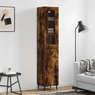 ManoManoGeneral description This stylish highboard adds an elegant charm to your existing interior while providing ample storage space for your daily essentials. The cabinet features practical doors to keep your space clutter-free, and its metal feet ensure stability while enhancing the overall aesthetic. Technical specifications Colour: Smoked oak Material: Engineered wood, metal, glass Overall dimensions: 34.5 x 34 x 180 cm (W x D x H) Sideboard dimensions: 34.5 x 34 x 90 cm (W x D x H) Top for highboard dimensions: 34.5 x 34 x 90 cm (W x D x H) Assembly required: Yes SKU: 3199190 Installation To prevent the highboard from being overturned, it must be used with the provided wall attachment device. Screws and plugs for inside the wall are not included; it is advised to use screws and plugs suitable for your walls. Please read and follow each step of the instructions carefully. Other information