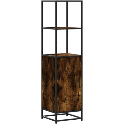 ManoManoGeneral description This highboard combines decorative appeal with practical storage, making it an excellent addition to your home. Technical specifications Colour: Smoked oak Material: Engineered wood, metal Dimensions: 35.5 x 35 x 139 cm (L x W x H) Maximum weight capacity (total): 60 kg Assembly required: Yes Installation Flexible door installation: The door of the compartment can be installed on the left or right according to your personal habits and convenience. Warning: To prevent it from tipping over, this product must be used with the provided wall attachment device. Usage Ample storage space: The tall cabinet features 1 compartment and open shelves, providing ample storage space for dining essentials and other household items to keep them organized and within reach. Practical handle: The tall storage cabinet comes with a handle that provides a comfortable grip, making it easy to open and close the cabinet while adding extra beauty. Other information