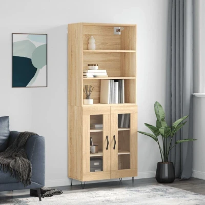 ManoManoGeneral description This stylish highboard adds an elegant charm to your existing interior. It is designed to provide ample storage space for keeping your daily essentials well-organized and within easy reach, while the practical doors help keep your space clutter-free. Technical specifications Colour: Sonoma oak Material: Engineered wood, metal, glass Overall dimensions: 69.5 x 34 x 180 cm (W x D x H) Sideboard dimensions: 69.5 x 34 x 90 cm (W x D x H) Top for highboard dimensions: 69.5 x 32.5 x 90 cm (W x D x H) Assembly required: Yes Delivery contains: 1 x Sideboard 1 x Top for highboard SKU: 3189312 Installation To prevent it from being overturned, this product must be used with the provided wall attachment device. Screws and plugs for inside the wall are not included; it is advised to find and use screws and plugs suitable specifically for your walls. Please read and follow each step of the instructions. Other information