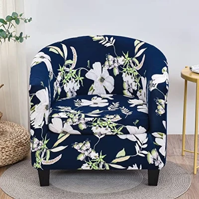 Highdi 2 Piece Classic Floral Tub Chair Cover Armchair Slipcovers with Cushion Stretch Spandex Removable Washable Protector for Club Living Room Reception (Dark Blue)