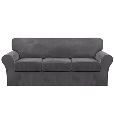 SOFT TOUCH: The sofa cover was made of soft velvet material, perfect fit for most types of sofas/couches, protecting them from stains, spills, scratches or tears, etc. Thick and soft velvet material ensures your sofa a comfortable and elegant new look. PERFECT FIT: Our printed stretch sofa slipcovers are constructed with 4 PIECE style (including 1 base cover and 3 individual cushion covers), separate seat cushions require no re-tucking. The sofa cover is easy to put on covering your sofa perfectly without wrinkles.This new sofa cloth can cover and decorate the damaged area of old sofa to make it reborn. Creating a comfortable environment to let you enjoy your leisure time. EASY TO CARE:Can be detached to clean At Any Time, Clean and Sanitary,Machine washable for easy care and maintenance, separately in cold water on the gentle cycle, do not use bleach. SIZE & COLOR: Sofa size(4 seaters) is suitable for sofa length between 96"-116"(243-295cm). Each chair cushion covers measure up to 21.6"-30.5"(54-77cm) length, 33"-38"(84-96cm) width, 2"-10" (5-25cm) thickness. Various classic colors are prepared for you, suitable for kinds of decoration styles.