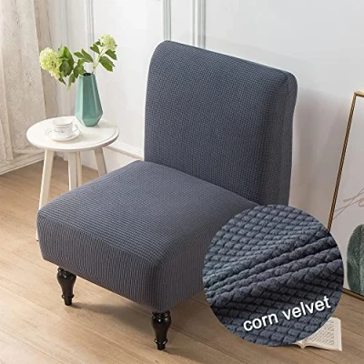 Highdi Armless Chair Slipcovers Accent Covers Stretch Removable Washable Slipper Cover Solid Color Jacquard Furniture Protector for Living Room Hotel Bedroom Luxury (dark grey)