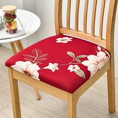 Highdi Dining Chair Seat Covers set of 1/2/4/6, Stretch Spandex Cushion Slipcovers, Removable Washable Protector Cover for Room Living Office Hotel (6 pcs,Fragrant flower red)
