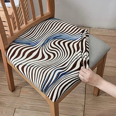 FASHION CHAIR SEAT COVERS: Seat covers for dining chairs are designed with a stylish solid color elements which gives your old, damaged, or ugly chair a new look and protects your chairs from daily tear, spills, and accidents, especially if you have kids and pets. HIGH STRETCH CHAIR SEAT PROTECTOR: The chair seat covers for dining room are made of 92% polyester and 8% spandex materials, which increase comfort while ensuring functionality, making the fabric soft, breathable and wear-resistant. It can be stretched arbitrarily to perfectly cover most dining chairs and office chairs. RECOMMENDED CHAIR SEAT SIZES: Decorative dining seat covers applicable for seat cushion length: 36-48cm; Seat cushion width: 36-48cm; Seat cushion thick: 2.5-6cm. Please measure the size of the chair before purchasing. EASY TO INSTALL AND CLEAN: The stretch chair covers with elastic band sewn on the hem can be easily put on the chair, and with the bottom ties, you can fix it in place in seconds to avoid slipping. Hand wash or machine wash in cold water. Tumble Dry Low. No ironing is needed. WIDELY USAGE: Dining room chair seat covers are ideal for a variety of chairs, plus a beautiful printing can be applied to more places upholstered chairs, like the living room, hotel, ceremony, wedding ceremonies and so on. Lightweight breathable seat cover applies throughout the year, you can carry easily to decorate different chairs.