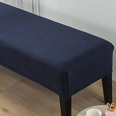 Highdi Dining Room Bench Covers, Velvet Upholstered Slipcover Soft Stretch Spandex Rectangle Full Coverage Removable Washable Seat Protector Footstool Cover (Navy Blue)