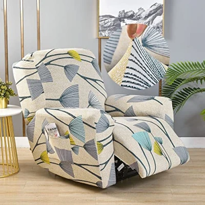 Highdi Floral Print Recliner Chair Covers for Electric Chair, 4 Pieces Stretch Slipcovers with Pockets Non Slip Sofa Cover Furniture Protector Living Room (Dandelion)