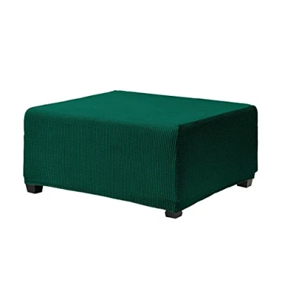 Highdi Jacquard Ottoman Cover Rectangle Plain Stretch Sofa Footstool Slipcover, Stool Protector with Elastic Bottom, Dustproof Removable Washable Footrest Pouffe Covers (Dark Green,M)