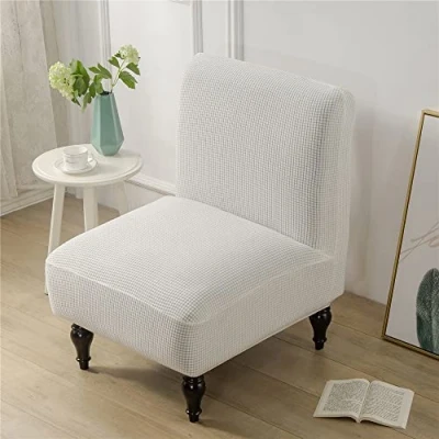 Highdi Jacquard Suede Armless Chair Slipcovers Accent Covers, Stretch Removable Washable Slipper Cover Furniture Protector for Dining Living Room Hotel Bedroom Luxury (White)