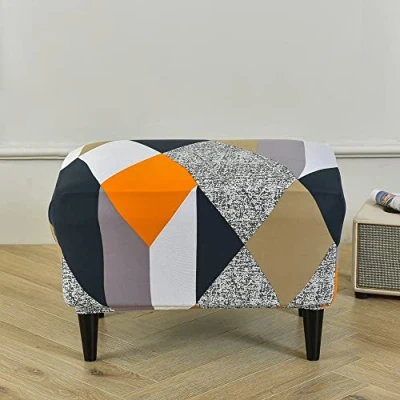 Highdi Ottoman Cover Rectangle Polyester Spandex, Stretch Footstool Slipcover,Stool Protector with Elastic Bottom,Removable Washable Dustproof Footrest Pouffe Covers (orange geometry,1pc)