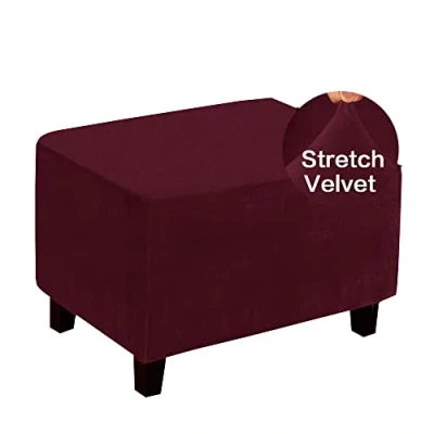 Highdi Ottoman Cover Rectangle Velvet, Stretch Footstool Slipcover, Solid Color Stool Protector with Elastic Bottom, Dustproof Removable Washable Footrest Pouffe Covers (Burgundy,L)