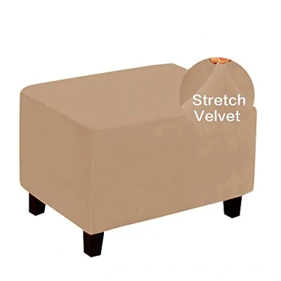 Highdi Ottoman Cover Rectangle Velvet, Stretch Footstool Slipcover, Solid Color Stool Protector with Elastic Bottom, Dustproof Removable Washable Footrest Pouffe Covers (Khaki,XL)