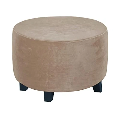 Highdi Ottoman Cover Round Velvet, Solid Color Stretch Footstool Slipcover, Stool Protector with Elastic Bottom, Dustproof Removable Washable Footrest Pouffe Covers (Taupe,S)